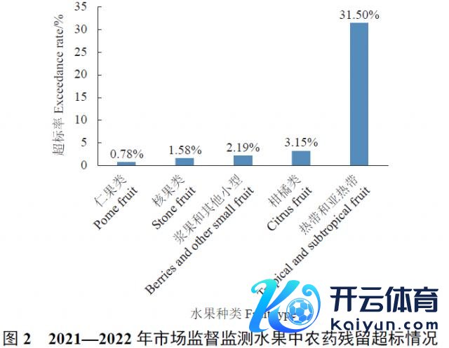 另一项究诘空洞分析近 5 年文件报谈和 2021~2022 年各省 ( 市、区 ) 市集监督处分部门蔬菜生果中农药残留监测检出情况 [ 2 ] :蔬菜中农药残留总的超标率为 5.09%,生果中农药残留总的超标率为 6.33%。换句话说,蔬菜农残检测的及格率快要 95%,生果近 94%。